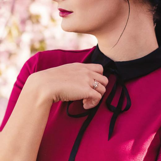 Radiating warmth and love, this adorable Morganite and Diamond Halo Engagement Ring is a perfect addition to any outfit.. Crafted in gleaming rose gold, this eye-catching ring features a round-cut, prong-set morganite gemstone (7x7 mm) in the center with 12 round-cut, prong set diamond accents (G-H, I1-I2) in the halo covering the crown and 3/4 of the band. Polished to a brilliant shine, this ring is an elegant piece suitable for every occasion.