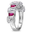 Striking 14K White Gold Yellow Plated Fashion Ring Featuring 5 CT Octagon Lab-Grown Diamonds and 1 CT Created Rubies — For a Distinctive Look.
