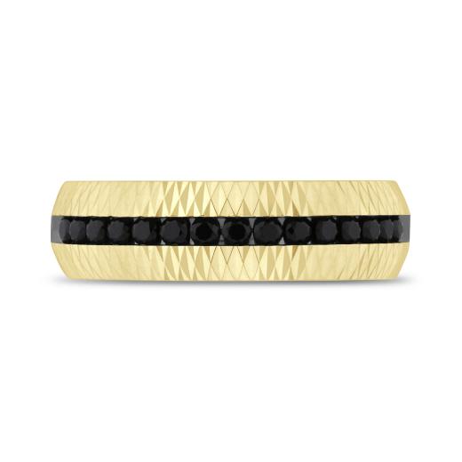 Crafted in rich 10-karat yellow gold, this ring features a sleek channel setting of 0.50 carats total weight in black diamonds. It’s a piece for those who embrace bold style and quiet confidence, where luxury meets attitude.