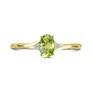 This 10K yellow gold ring features a vibrant peridot centerpiece that gleams with lively green brilliance. Accented by a delicate touch of diamonds, it radiates elegance and subtle charm. Its bright and cheerful style makes it a stunning signature piece, perfect for celebrating personal style with a fresh twist.