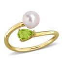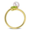 Fresh and vibrant, this peridot and 6–6.5mm white freshwater cultured pearl fashion ring in yellow silver exudes natural elegance. The green peridot shines beside a radiant white pearl, all set in warm yellow-plated sterling silver—a perfect accent for a cheerful, polished look.