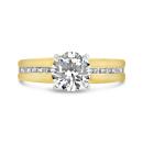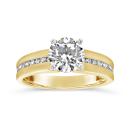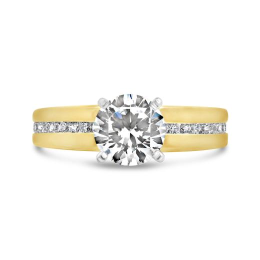 A stunning 1.5-carat lab grown diamond takes center stage in this elegant two-tone design. Crafted in 14K yellow and white gold, the ring features a bold yellow gold band accented with a row of sparkling diamonds along each side, bringing the total weight to 1.84 CTW. The white gold prong setting enhances the brilliance of the center stone, creating a timeless look with modern sophistication.